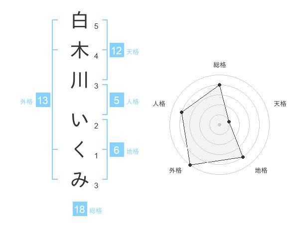 白木川 いくみさんの外格は13画の5点!