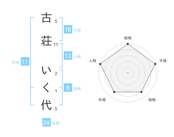 古荘 いく代さんを姓名の画数から五運を鑑定