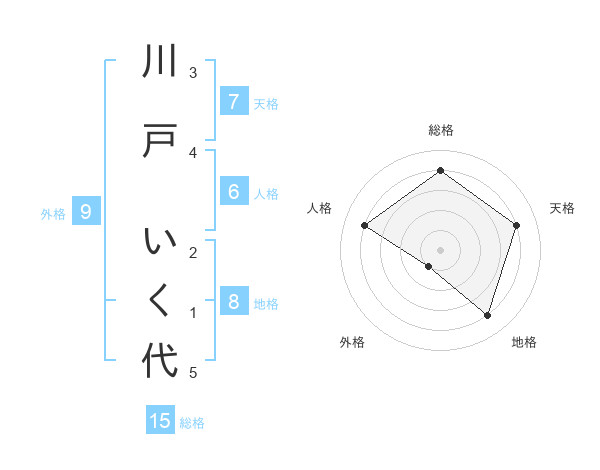 川戸 いく代さんを姓名の画数から五運を鑑定