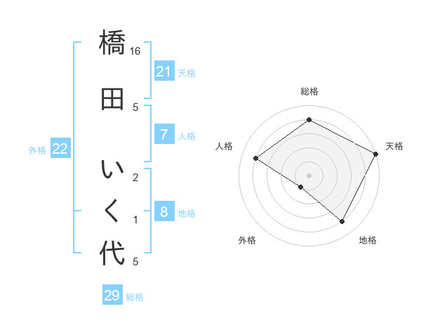 橋田 いく代さんを姓名の画数から五運を鑑定