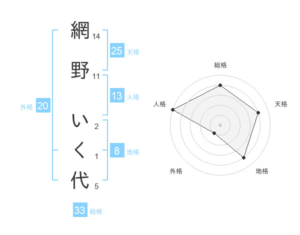 網野 いく代さんの総格は33画の4点