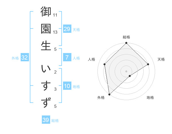 御園生 いすずさんの総格は39画の5点!
