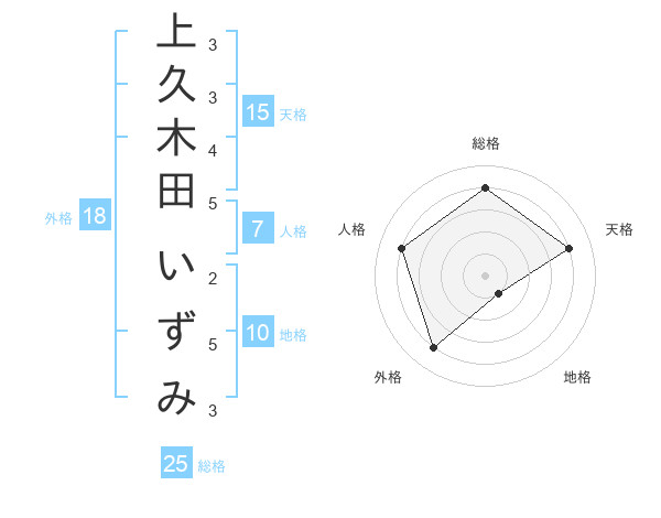 上久木田 いずみさんを姓名の画数から五運を鑑定