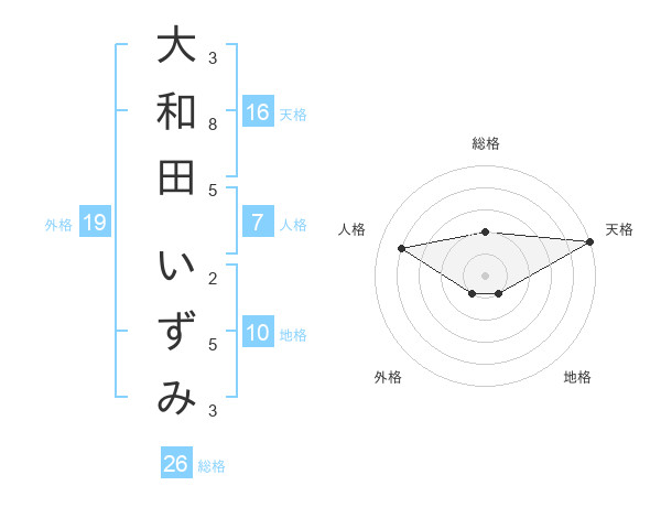 大和田 いずみさんを姓名の画数から五運を鑑定
