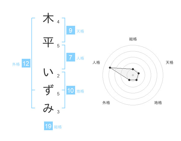 木平 いずみさんの総格は19画の1点!