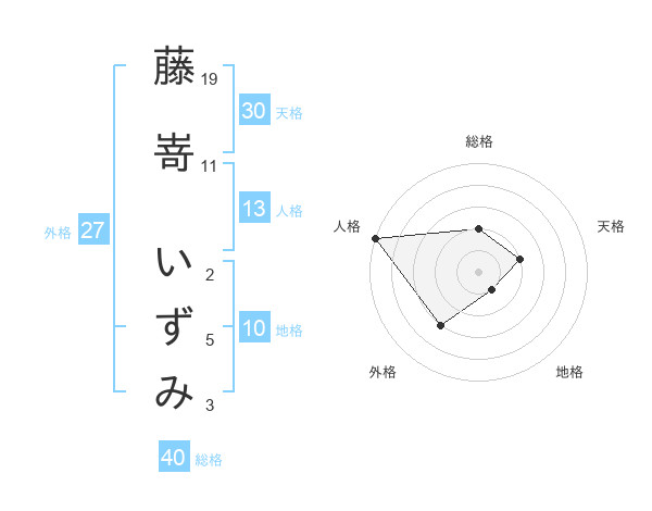 藤嵜 いずみさんを姓名の画数から五運を鑑定