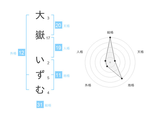 大嶽 いずむさんを姓名の画数から五運を鑑定