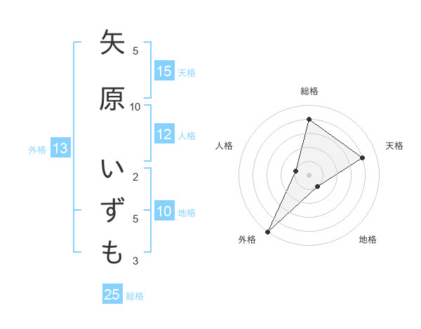 矢原 いずもさんの外格は13画の5点!