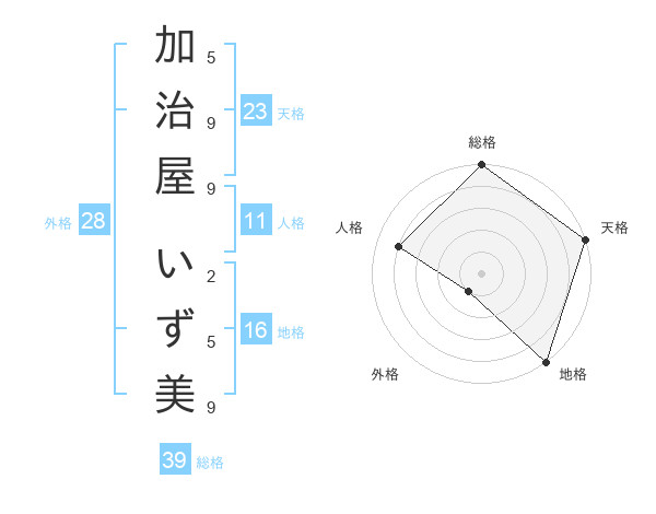 加治屋 いず美さんの総格は39画の5点