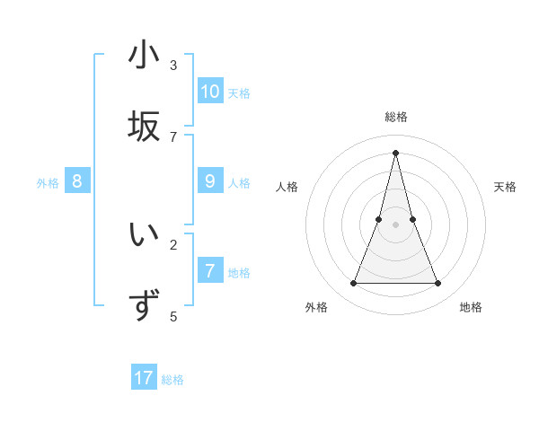 小坂 いずさんの総格は17画の4点!