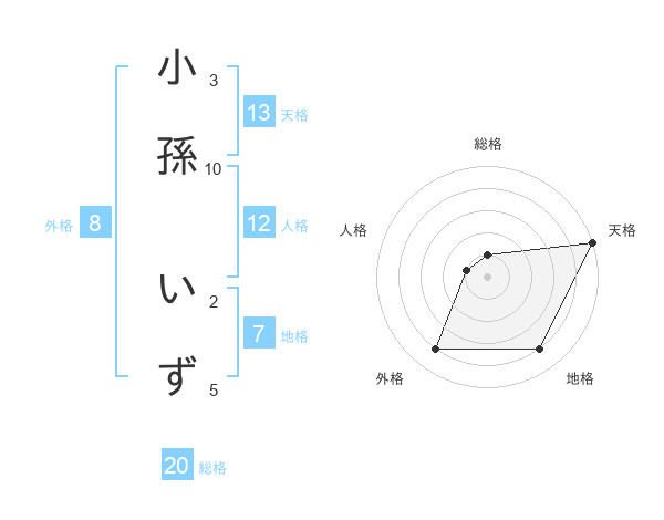 小孫 いずさんの天格は13画の5点!