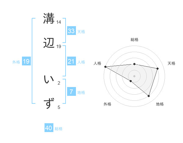 溝辺 いずさんの総格は40画の2点!