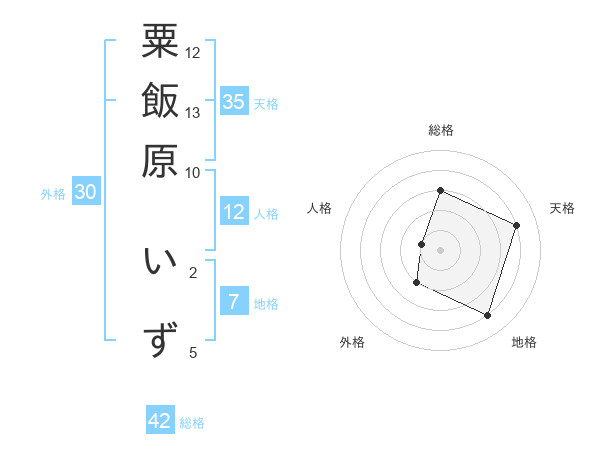粟飯原 いずさんを姓名の画数から五運を鑑定