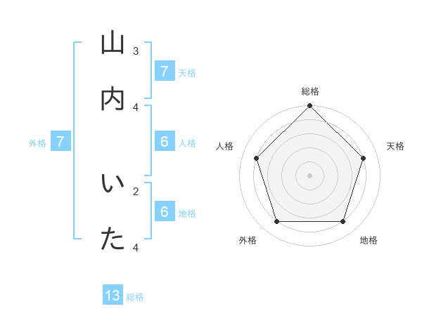 山内 いたさんの総格は13画の5点!