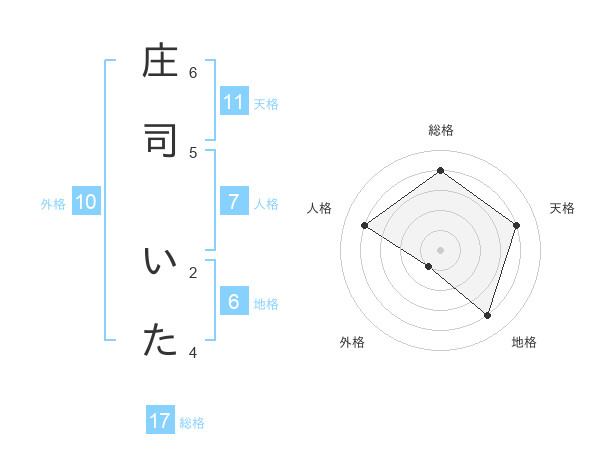 庄司 いたさんの総格は17画の4点!
