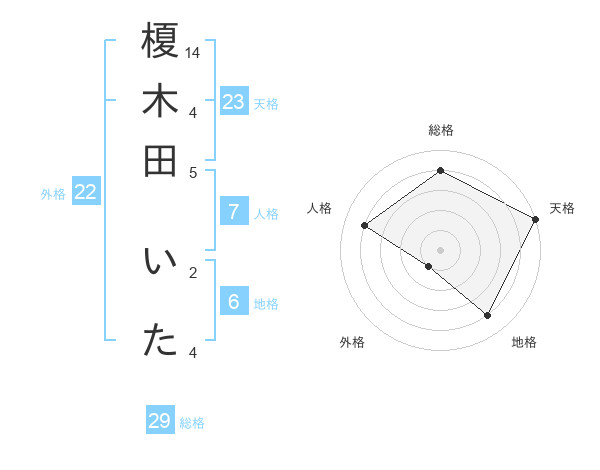 榎木田 いたさんの総格は29画の4点!