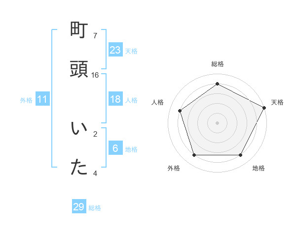 町頭 いたさんの総格は29画の4点!