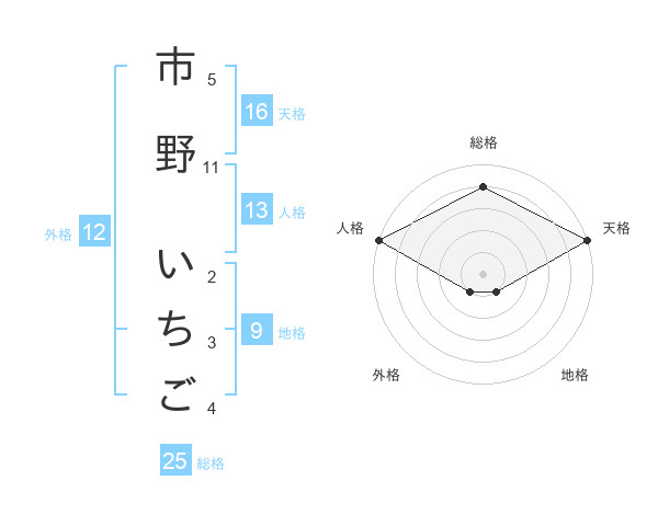 市野 いちごさんの総格は25画の4点