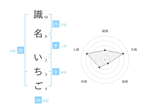 識名 いちごさんの総格は34画の2点!