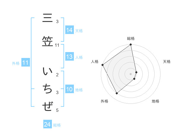 三笠 いちぜさんの総格は24画の5点!