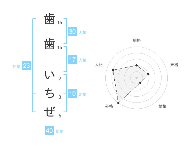 歯歯 いちぜさんの外格は23画の5点!