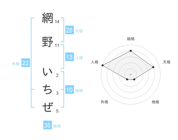 網野 いちぜさんを姓名の画数から五運を鑑定