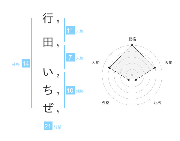 行田 いちぜさんを姓名の画数から五運を鑑定