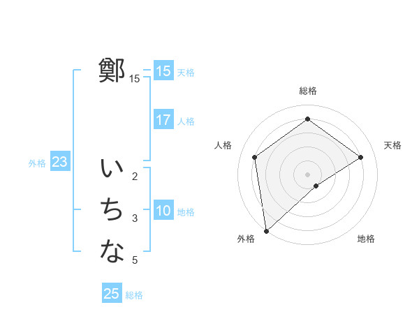 鄭 いちなさんの外格は23画の5点!