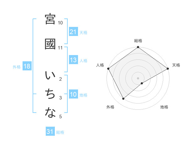 宮國 いちなさんの天格は21画の5点!