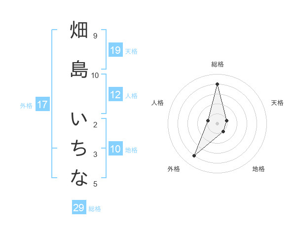 畑島 いちなさんの総格は29画の4点!