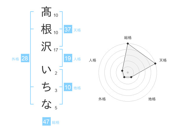 髙根沢 いちなさんの総格は47画の5点!