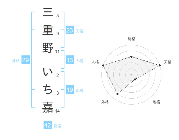 三重野 いち嘉さんを姓名の画数から五運を鑑定