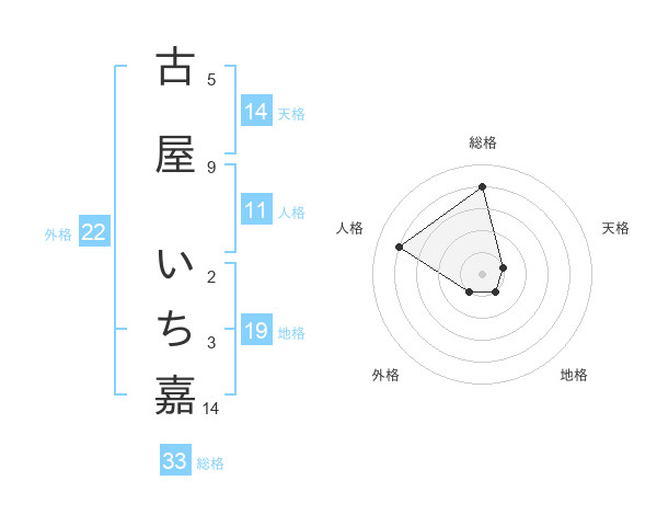 古屋 いち嘉さんを姓名の画数から五運を鑑定