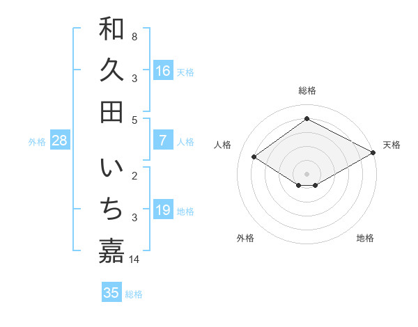和久田 いち嘉さんを姓名の画数から五運を鑑定