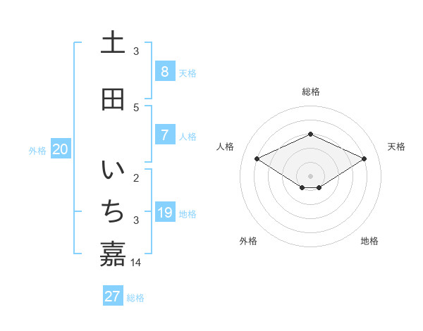 土田 いち嘉さんを姓名の画数から五運を鑑定