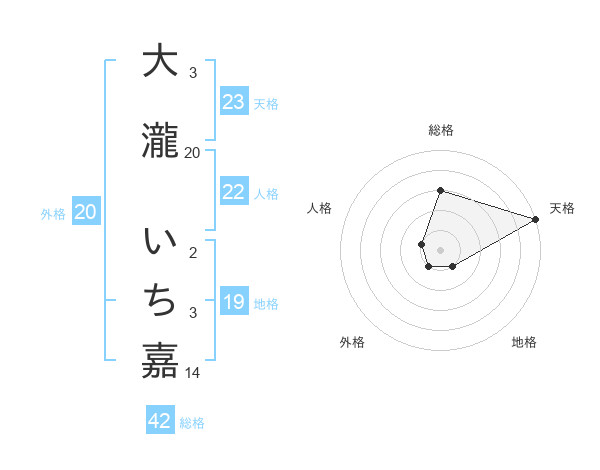大瀧 いち嘉さんを姓名の画数から五運を鑑定