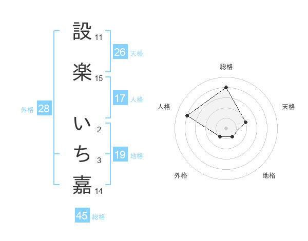 設楽 いち嘉さんを姓名の画数から五運を鑑定
