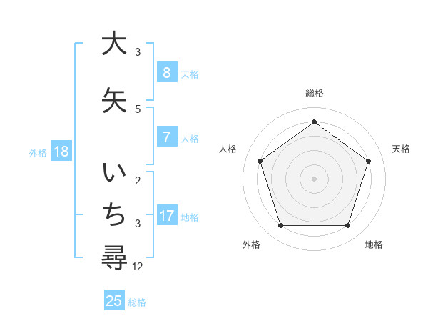 大矢 いち尋さんを姓名の画数から五運を鑑定