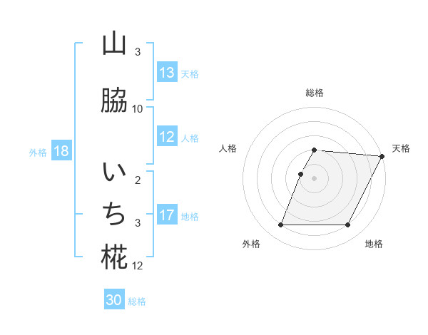 山脇 いち椛さんを姓名の画数から五運を鑑定
