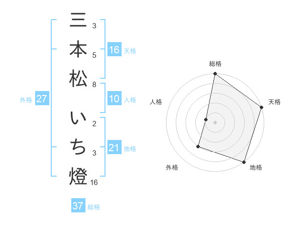 三本松 いち燈さんの総格は37画の5点!