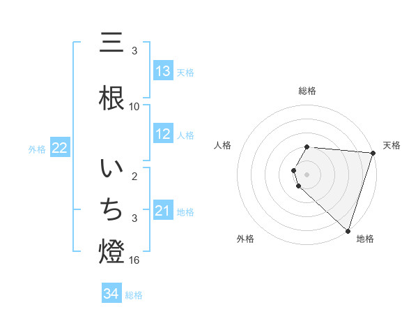 三根 いち燈さんの天格は13画の5点!
