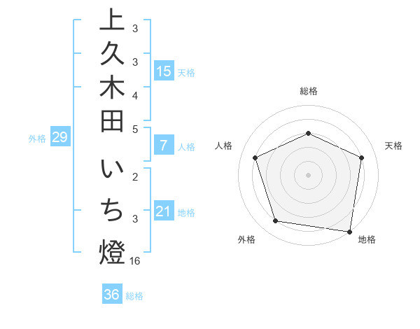 上久木田 いち燈さんの総格は36画の3点!