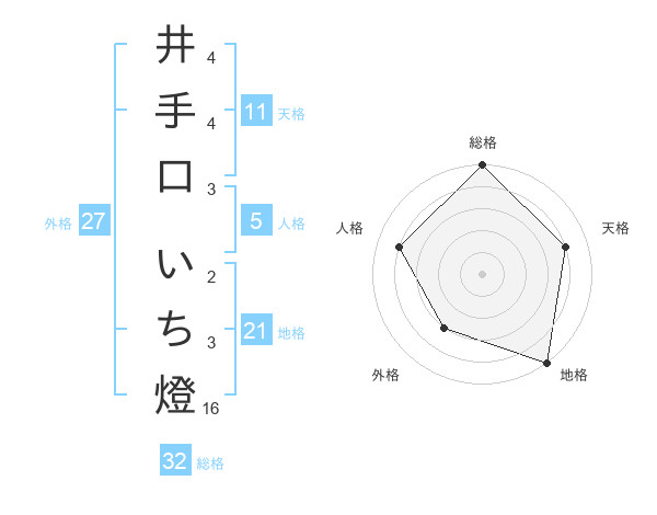井手口 いち燈さんの総格は32画の5点!