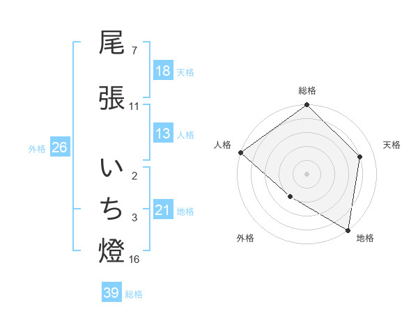 尾張 いち燈さんを姓名の画数から五運を鑑定
