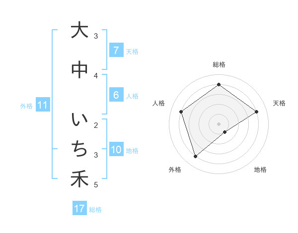 大中 いち禾さんを姓名の画数から五運を鑑定