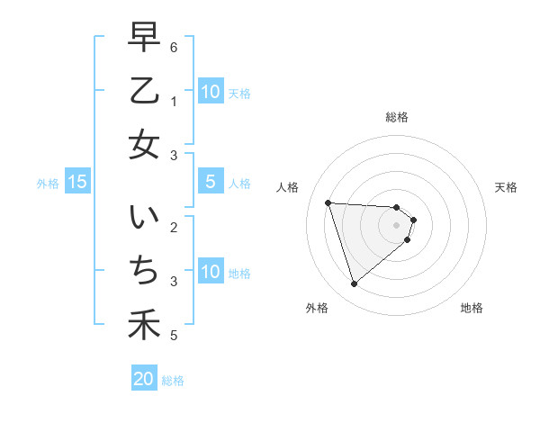 早乙女 いち禾さんの総格は20画の1点!