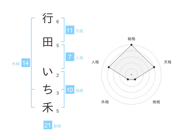 行田 いち禾さんを姓名の画数から五運を鑑定
