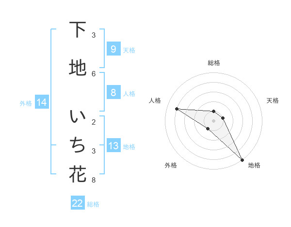 下地 いち花さんの総格は22画の1点!