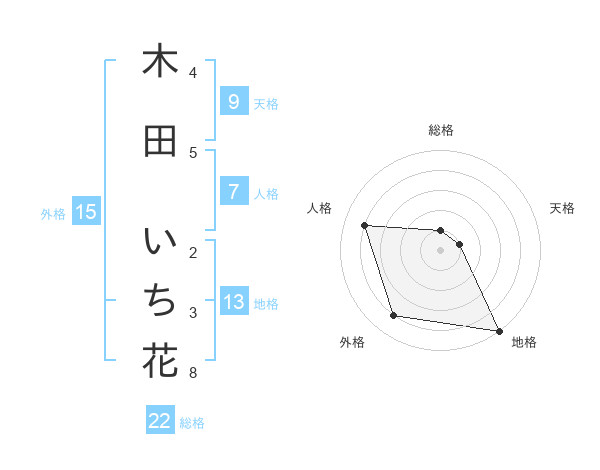 木田 いち花さんの総格は22画の1点!
