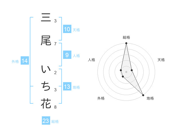 三尾 いち花さんを姓名の画数から五運を鑑定